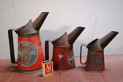 Early Price's Graduated Set of 3 Motorine Oil Pourer Jugs. Comprising of quart-pint-half pint.