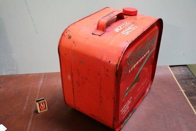 Vintage R.T.S 1/2 Pint British Made Boat Shape Button Pump Oiler.