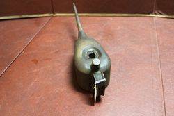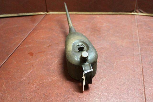 ID: A5647Vintage 1/3 pint Boat Shape Oiler with Button Pump Action.
