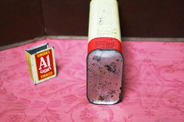 Small Vintage Burrsthreo Lubricating Oil Tin. With Contents. For Lubricating all Types of Light Machinery.