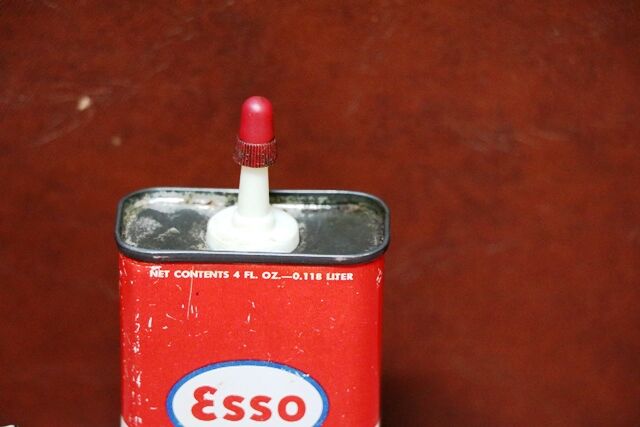 Antique Copper & Brass Button Pump Can Shape Oiler.