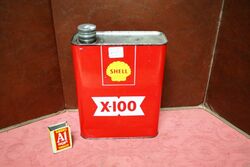 New Old Stock and Unopened Shell X-100 2 Litres Motor Oil Tin, Extremity Bright Colours.