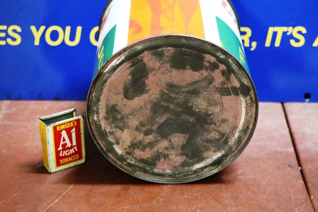 Sealed Mobil Super 1ltr Oil Tin 13cm tall 11cm diameter