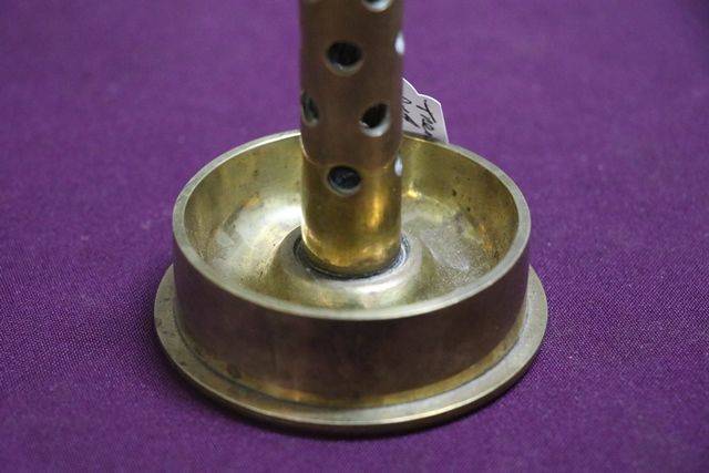 ID: M2621Early 19th Century Brass Chamber Candle Stick Holder measures 13cm x 18cm
