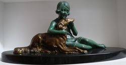 Art Deco spelter group on black marble base C1925 24 cm high, 67 cm wide, 19 cm deep
