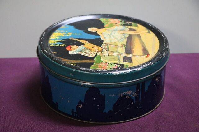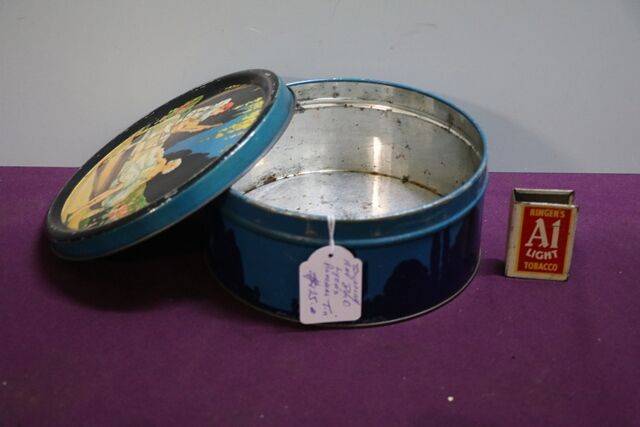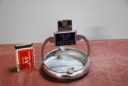 A Rare Vintage Blue Enamel & Chrome Plated "Teas with Hovis" Combined Ash Tray-Menu holder. Stamped on Base.