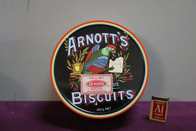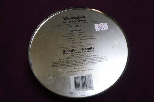 Arnotts Biscuit Tin , Royal Stewart Tartan. C1981.