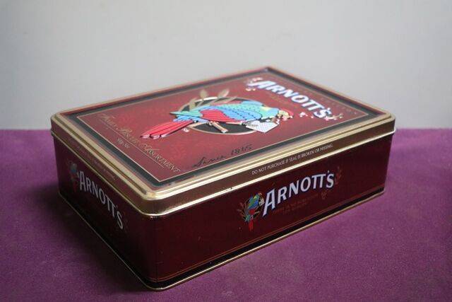 Arnotts Biscuit Tin , Vintage Xmas Tin. Wrapping Presents.