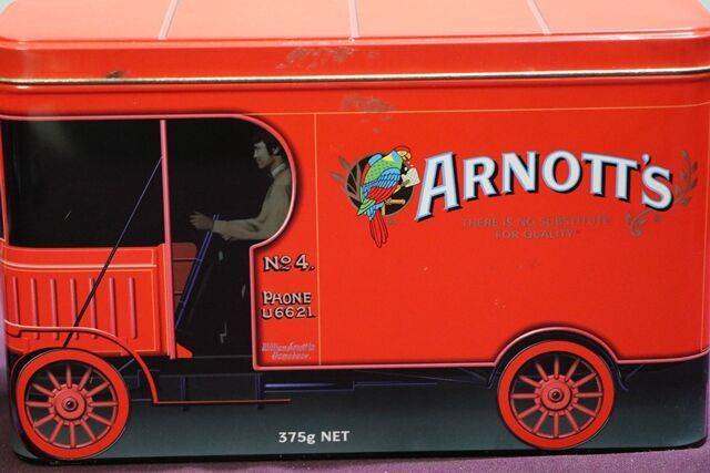 Arnotts Biscuit Tin . Roses 1.3 kg TIN. Circa 1982.