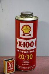 Vintage Shell X-100 Motor Oil 20/30. Quart Can. In Lovely Condition.