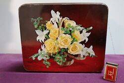 Arnotts Biscuit Tin . Yellow Roses in Basket. C1971.