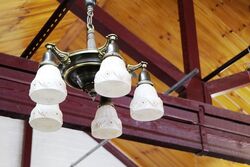 Art Deco 5 Branch Glass & Bronzed Metal Ceiling Lamp with 5 Hanging Shades. In very nice original condition.