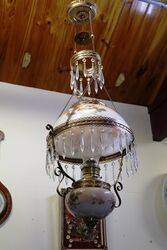 Antique Late C19th Millers Glass Hanging Lamp with Original Shade.