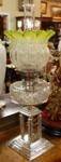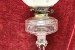 Victorian Table Lamp w/ Cut Lead Base matching thumb cut font, Hinks double oil burner original shade C1885