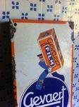 New Old Stock Porcigene Aliment Compose Complet French Tin Sign. With Porcigene Complete Compound Feed It ( the pig ) Profits.. A.E.C Alimentation Animale Advertising Sign. 50cm wide x 30cm high