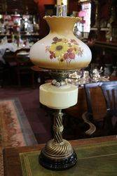 Late Victorian Oil Lamp With Painted Shade 67cm tall