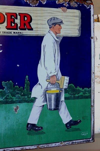 A Wonderful French Dolle Pictorial Enamel Sign, Lovely sign. 51cm tall 69cm wide
