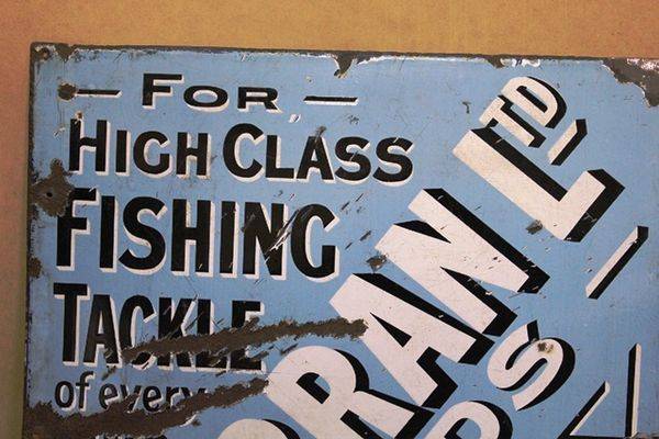 Early John H Fuller Marpedo Water Paint Pictorial Enamel Sign. 61cm wide x 46cm high.