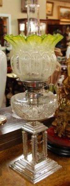 Antique MILLER Oil Lamp with Milk Glass Shade. Nice original example..