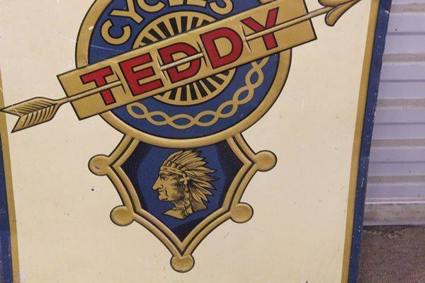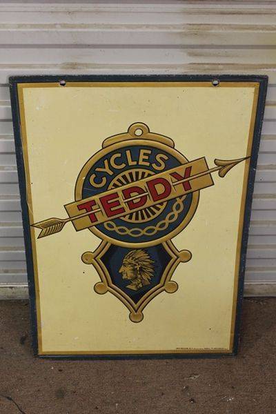 Pneus Kleber-Colombes Tyres Enamel Advertising Sign 193cm wide x 66cm high