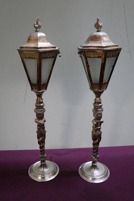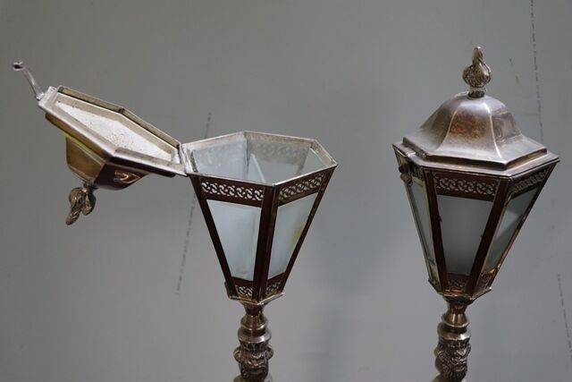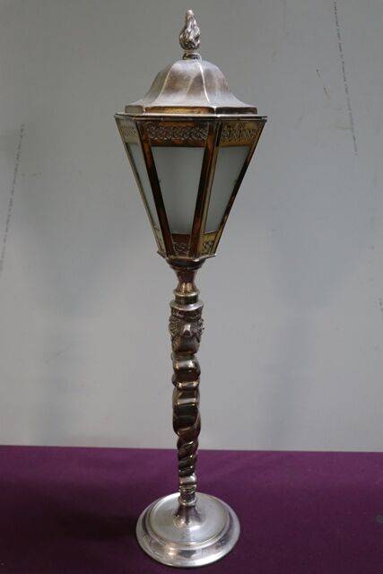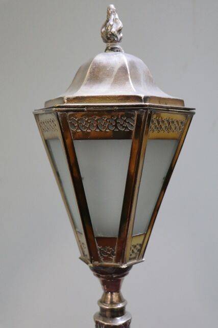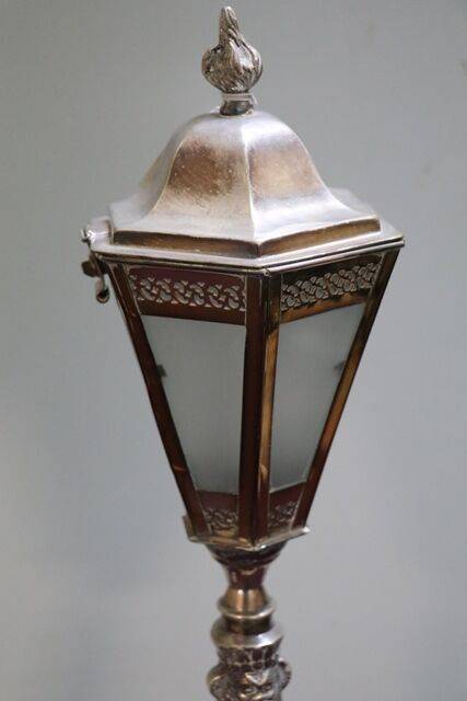 French Oil Lamp Single Burner Hand Painted Satin Glass