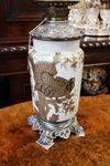 Early 20th century china double burner oil lamp,with original etched shade.