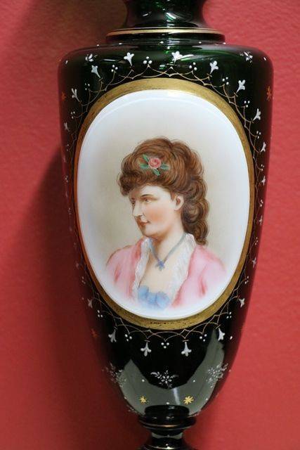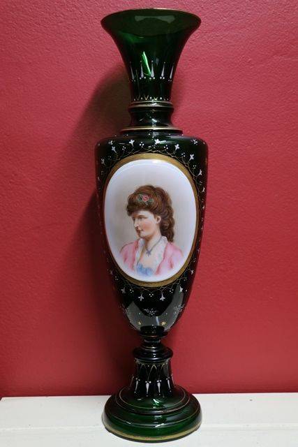 Victorian Mary Gregory Glass Vase C1890 28cm tall