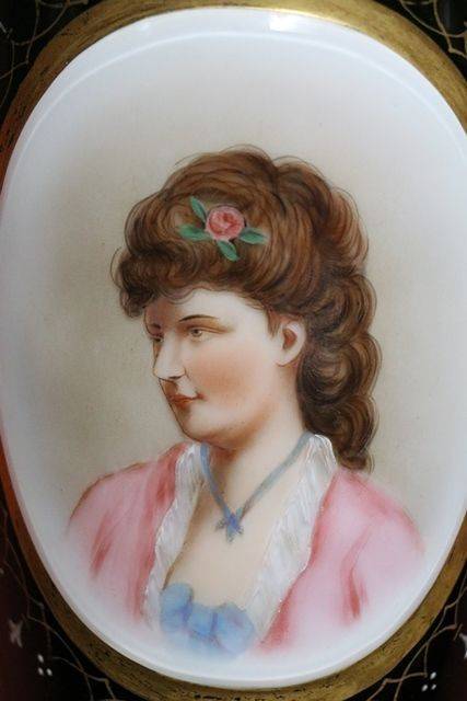 Antique Ruby Glass Mary Gregory Portrait Jug. 16cm high.