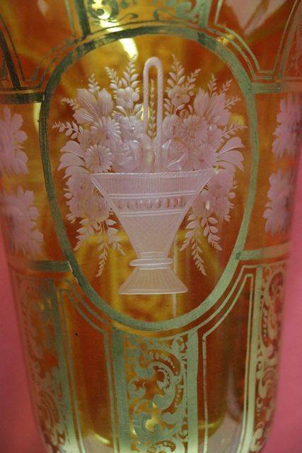 GENUINE.Antique Ruby Glass White Enamel Painted Vase 22cm tall