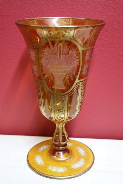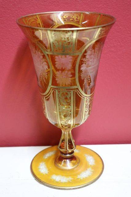 Antique Rare Ruby Overlay Glass Cameo Portrait Goblet. Stunning Example and All Hand Decorated. 27cm high.