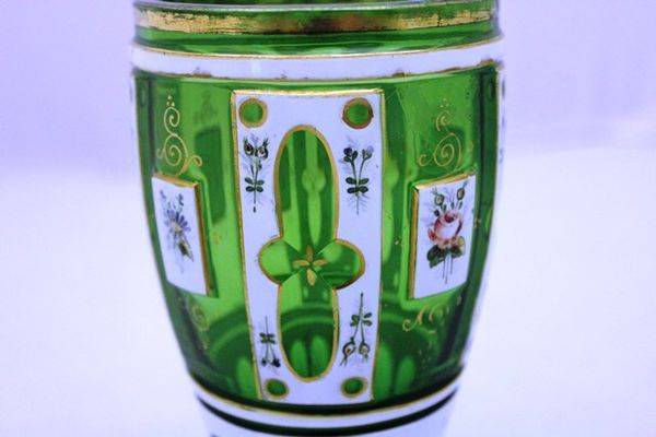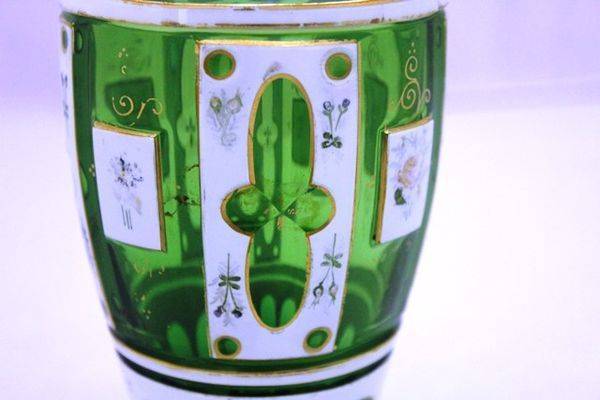 Antique Victorian Milk Glass Hand Decorated Vase 38cm high