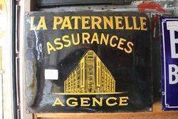 La Paternelle Assurances Agence French Pictorial Convex Enamel Sign 49cm wide x 39cm high