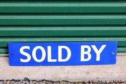 Sold By..Enamel Sign 15cm tall 61cm wide