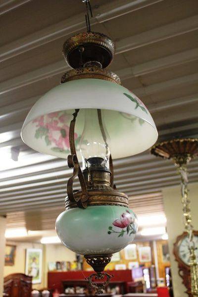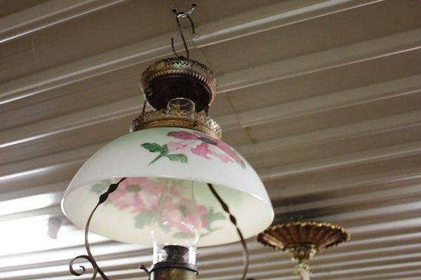 Antique Glass Electric Lamp + Shade #
