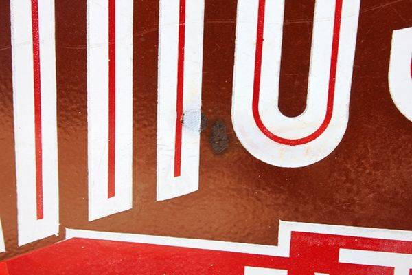 Mobiloil Gargoyle Enamel Advertising Sign ``BB'` Has Had some Restoration as per photos 23cm tall 28cm wide