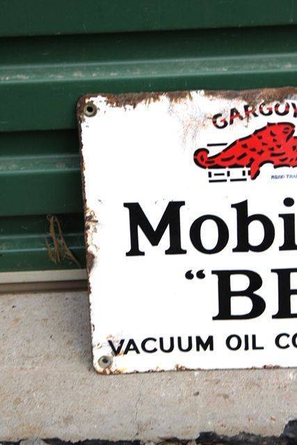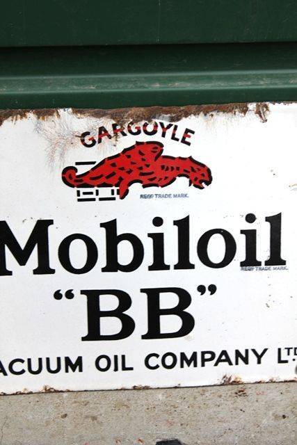 Mobiloil Gargoyle Enamel Advertising Sign "BB" Has Had some Restoration as per photos 23cm tall 28cm wide