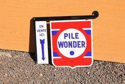 Pile Wonder Batteries Enamel Double Sided Post Mount Sign 52cm tall 56cm wide