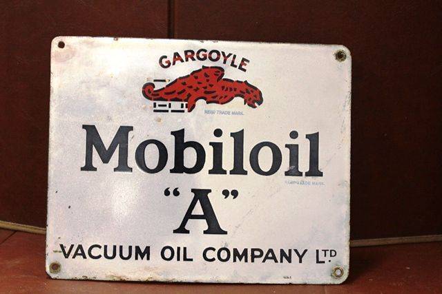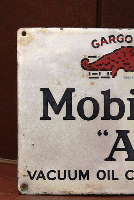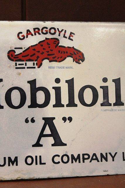Mobiloil Gargoyle Enamel Advertising Sign "A" Has Had some Restoration as per photos 23cm tall 28cm wide