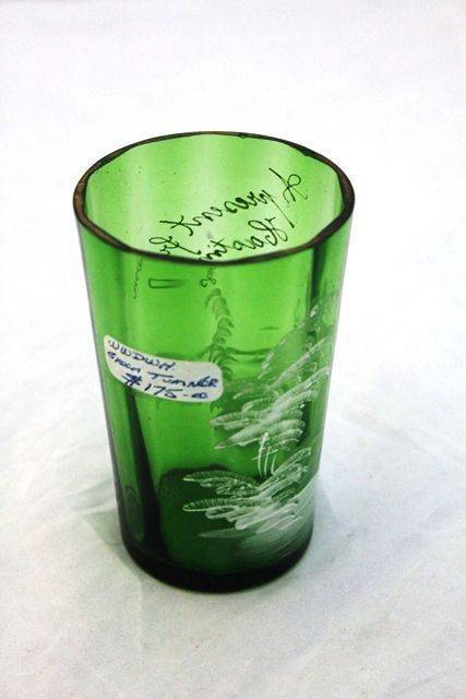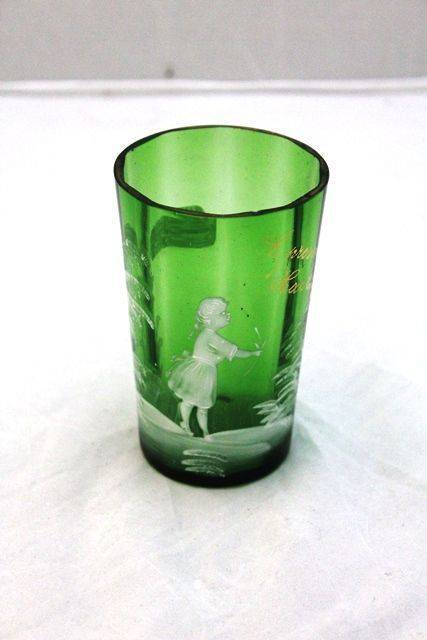 Antique Ruby Glass Mary Gregory Tumbler. 9cm high.