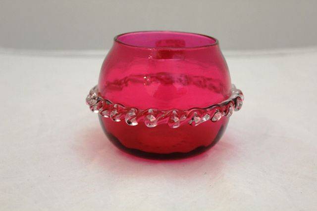 Antique Ruby Glass Mary Gregory Powder Bowl. #