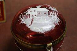 Antique Ruby Glass Mary Gregory House Trinket-Powder Bowl. 8cm high.