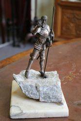 A fine bronze figure of Don Quixote. Silvered, gilt and dark patination. Good detail and well sculpted. Signed on leg. 26 cm high, 14.5 cm wide, 17.5 cm deep.