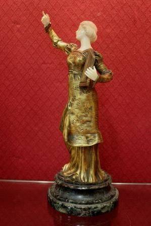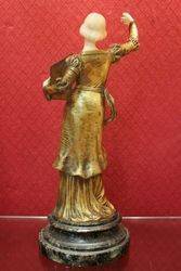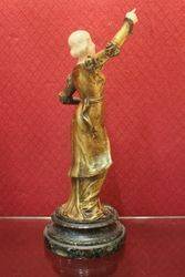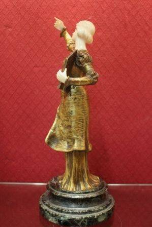 Joueuse de Flute...A superb Chryselephantine sculpture in bronze with Gilded Patina with Hands & Head in Ivory by Xavier Raphanel (Raphael) born 1877 in Amsterdam, Raphael exhibited between 1900 and the First World War.