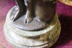 A Stunning Art Deco Silvered Bronze Group of a Nude Diana the Huntress on a Marble Base. Signed by Renowned French Sculptor Henri Fugere ( 1872-1944 ). Wonderful Example of Pure Deco.