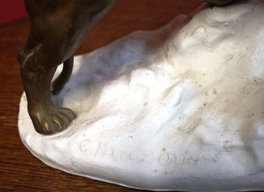 Masson born 1838, died 1913, studied under Santiago, Barye and Rouillard, exhibited at the Salon 1867 to 1881, then at the Salon des Artistes Francais, won Hon Mention in 1890.