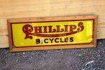 Phillips Cycles Framed Glass Advertising Sign. 31cm tall 81cm wide