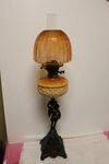 A Rare Victorian Lamp Cast Iron Base All Original shade,font and burner C1890