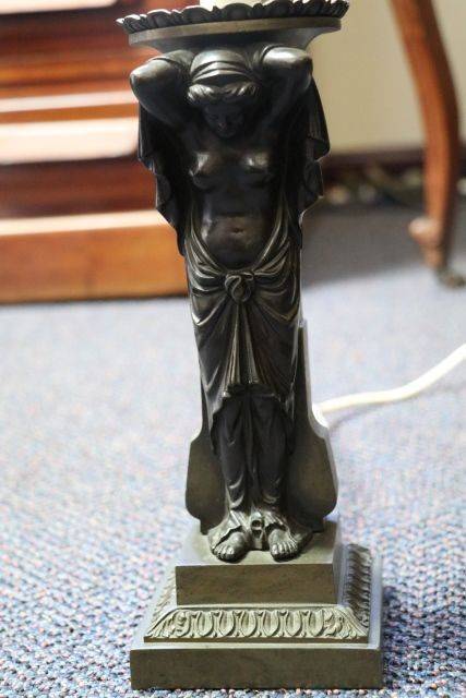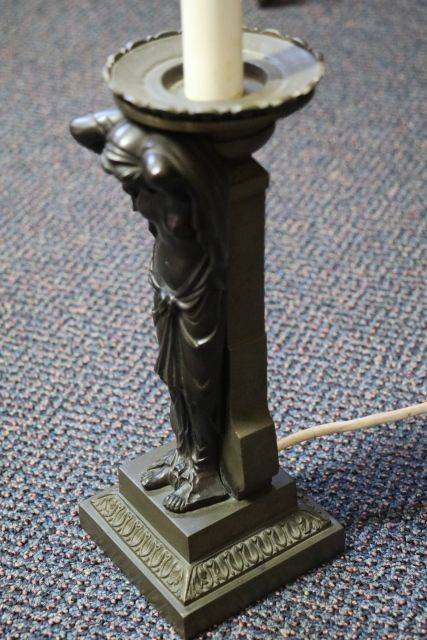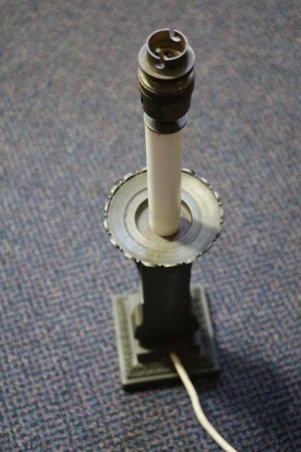 Victorian Table Lamp w/ Cut Lead Base matching thumb cut font, Hinks double oil burner original shade C1885