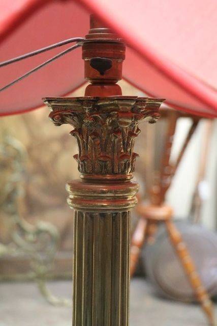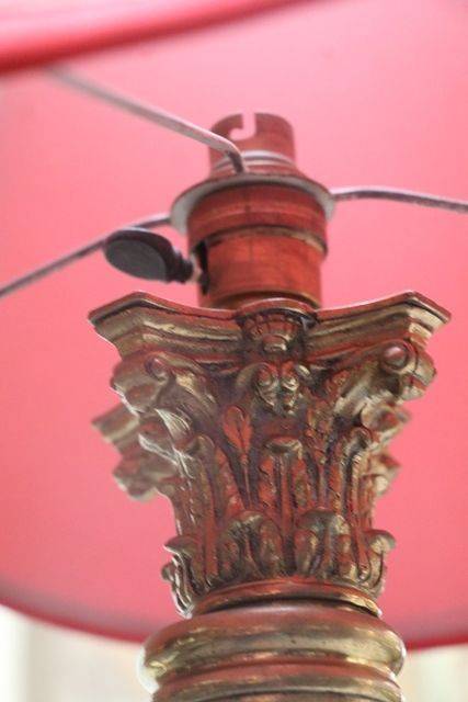 Victorian Oil Lamp On 4 Column Silver Plated Cherub Base. .