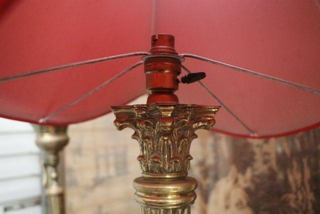 Pair of Antique Bronze And Ruby Overlay Glass Hanging Lamps